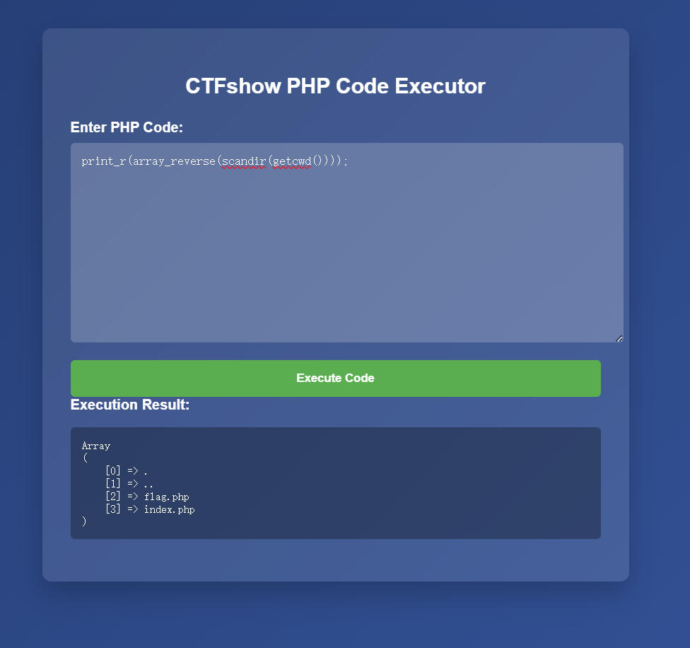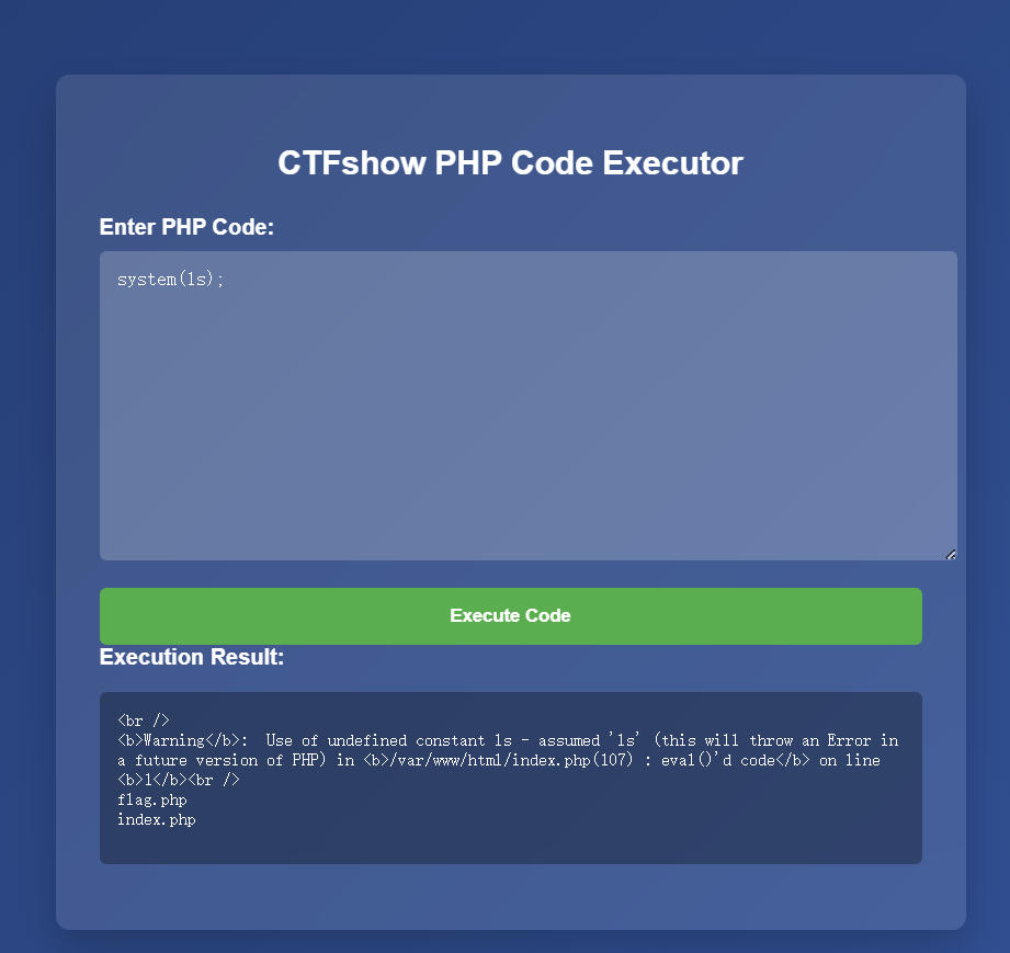 有一个告警,但是成功执行了,可以看到这个目录下面有flag.php index.php
