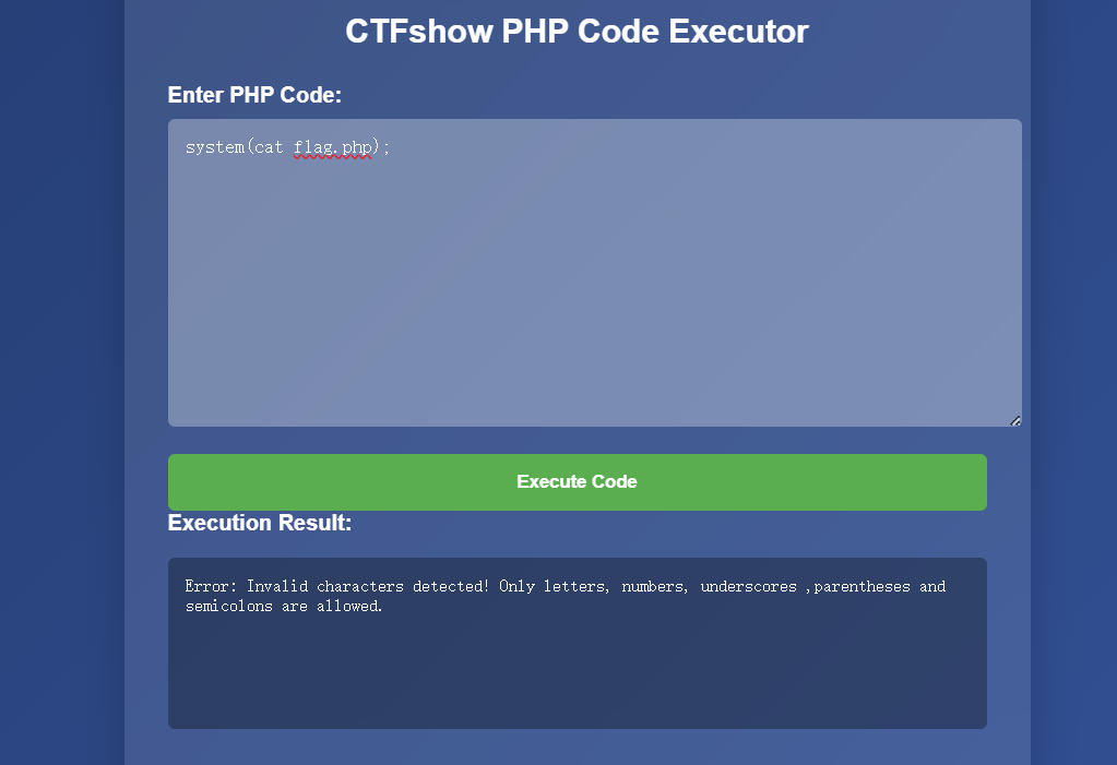 那限制其实还好,没有限制很多东西,我们直接试试system函数看看能不能直接执行shell命令