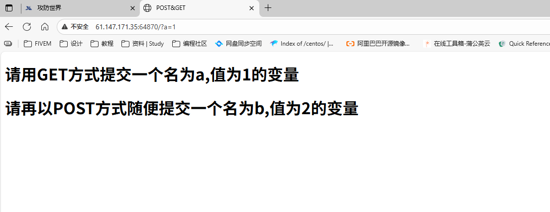 题目为GET_POST,也就是和HTTP方法相关,猜测是使用GET或者POST进行传参,随后获得FLAG值