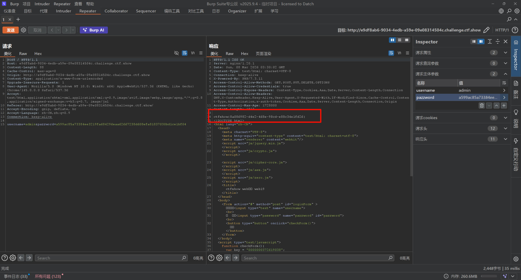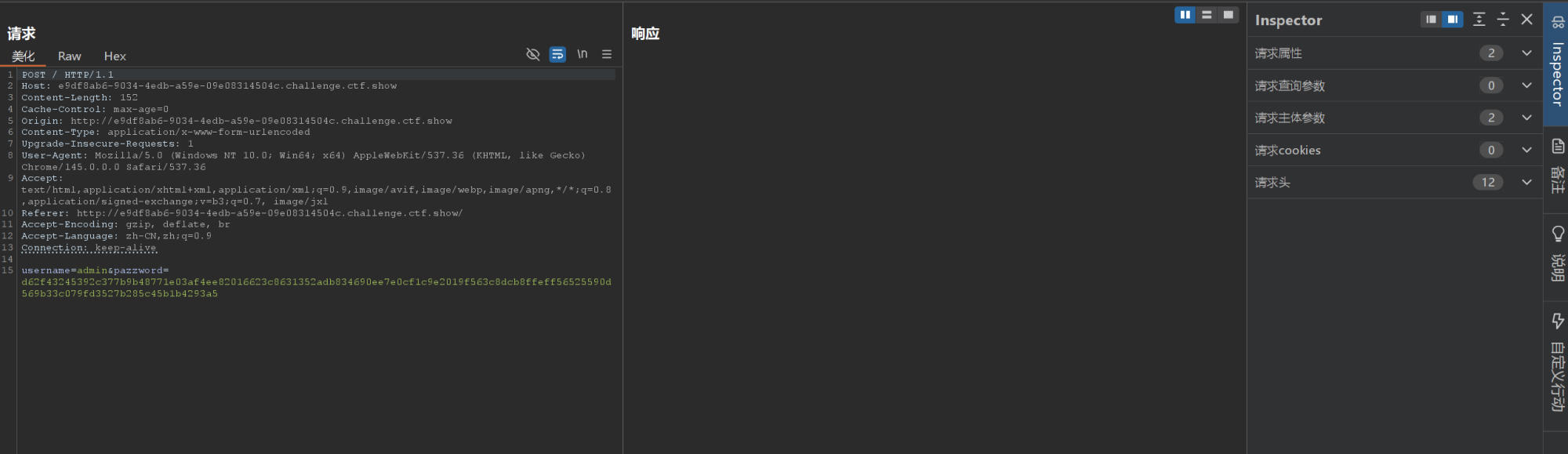 发现已经把账号密码写在前面了,直接进行一个登陆,但是发现账号密码无效,因为输入的密码会被二次加密,我们需要直接POST