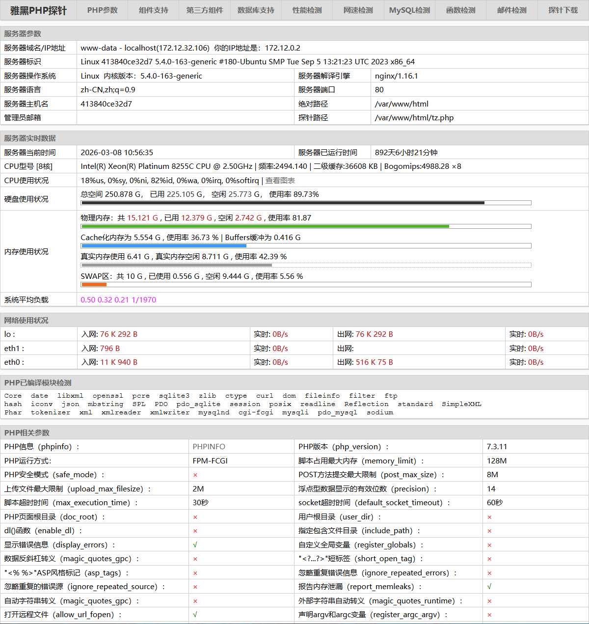 在文件里面发现了函数检测的主入口,但是无法回显,发现有地方可以查看phpinfo()