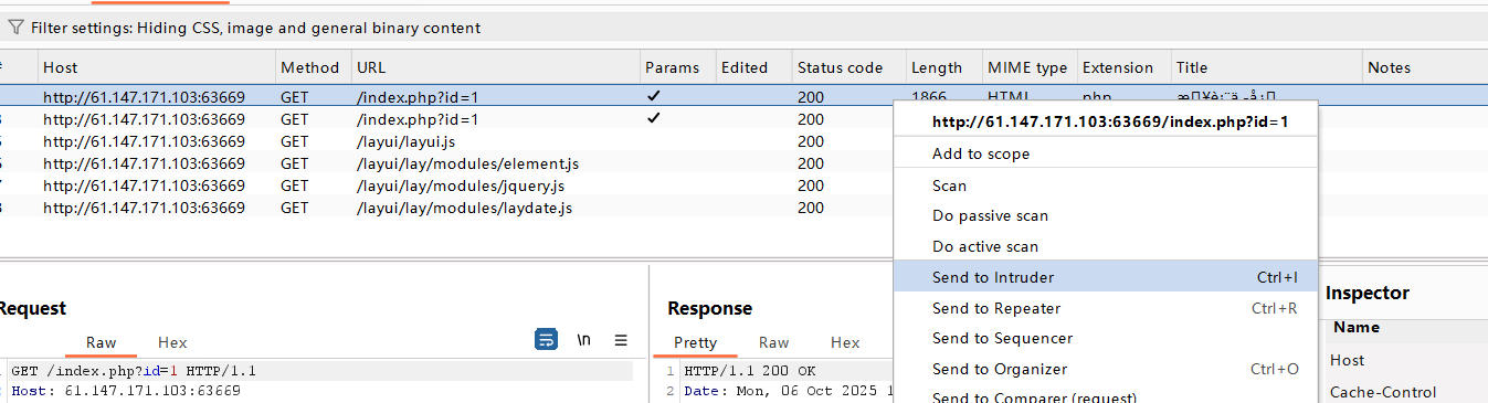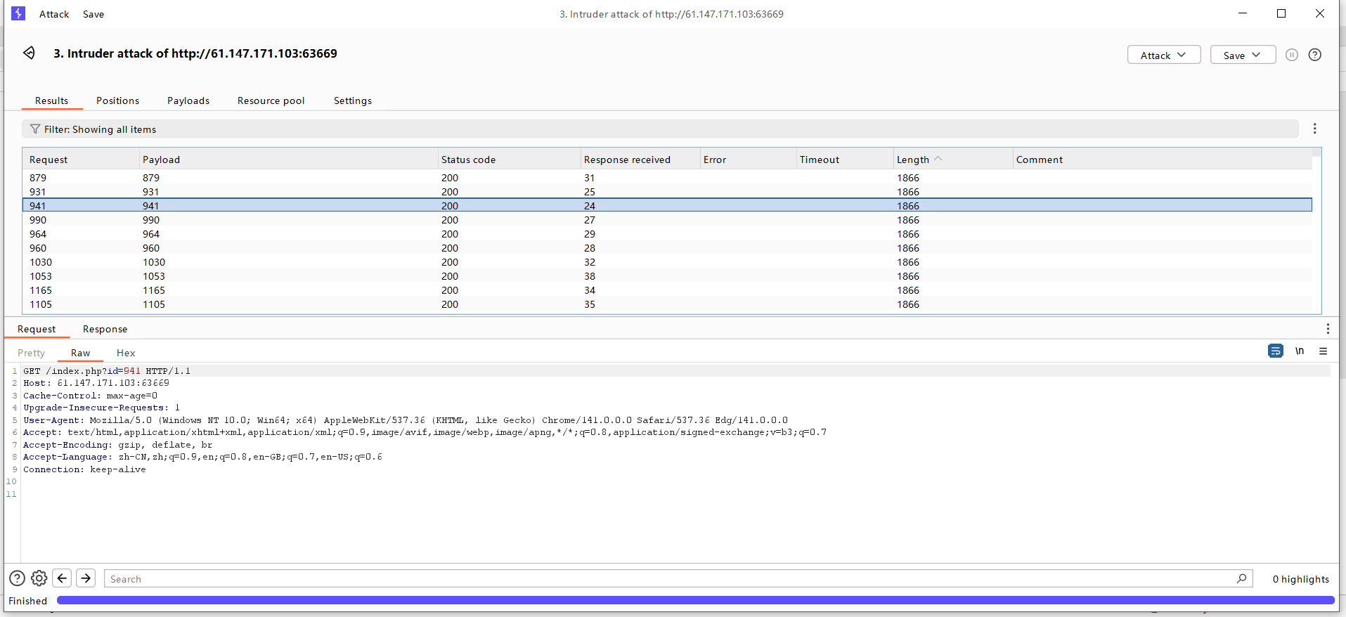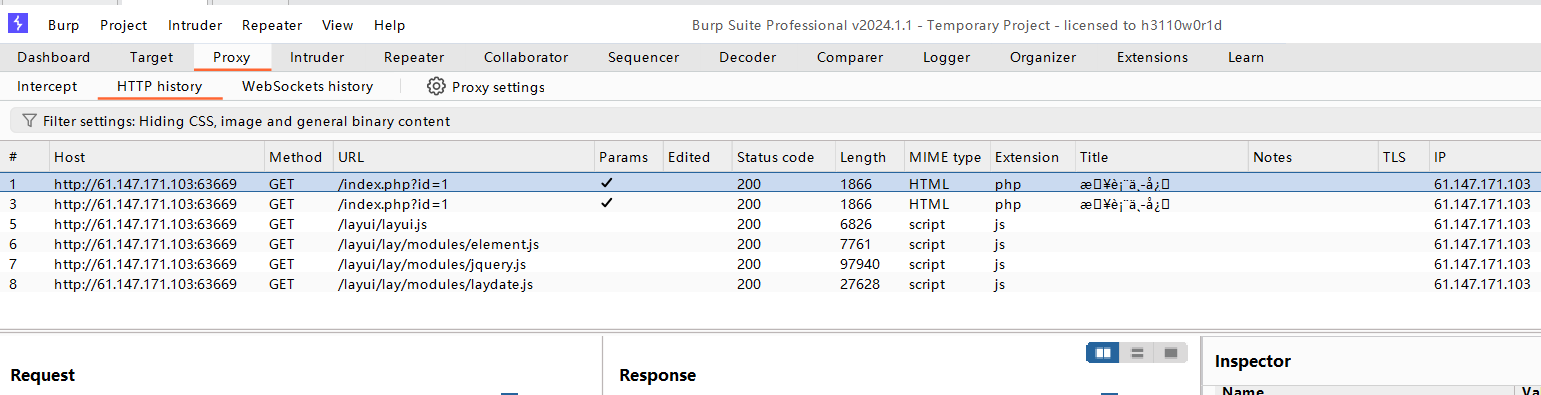 同时发现,地址上多了一个查询参数?id=1,除此以外没有发现别的线索。尝试对ID进行爆破
