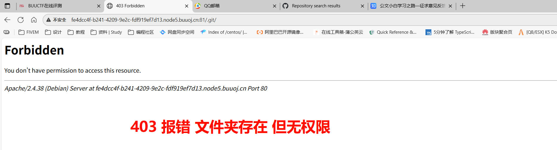 已经将Git测试几个大字提示在上面了,访问/.git目录尝试查看文件并确认文件是否存在。