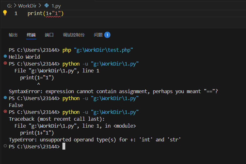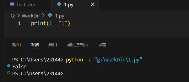当两个数据类型不同的变量相加时,会报错提示,类型不相同,无法进行运算,同样的,当我们使用两个不同类型的进行比较运算时,只会返回False的结果。