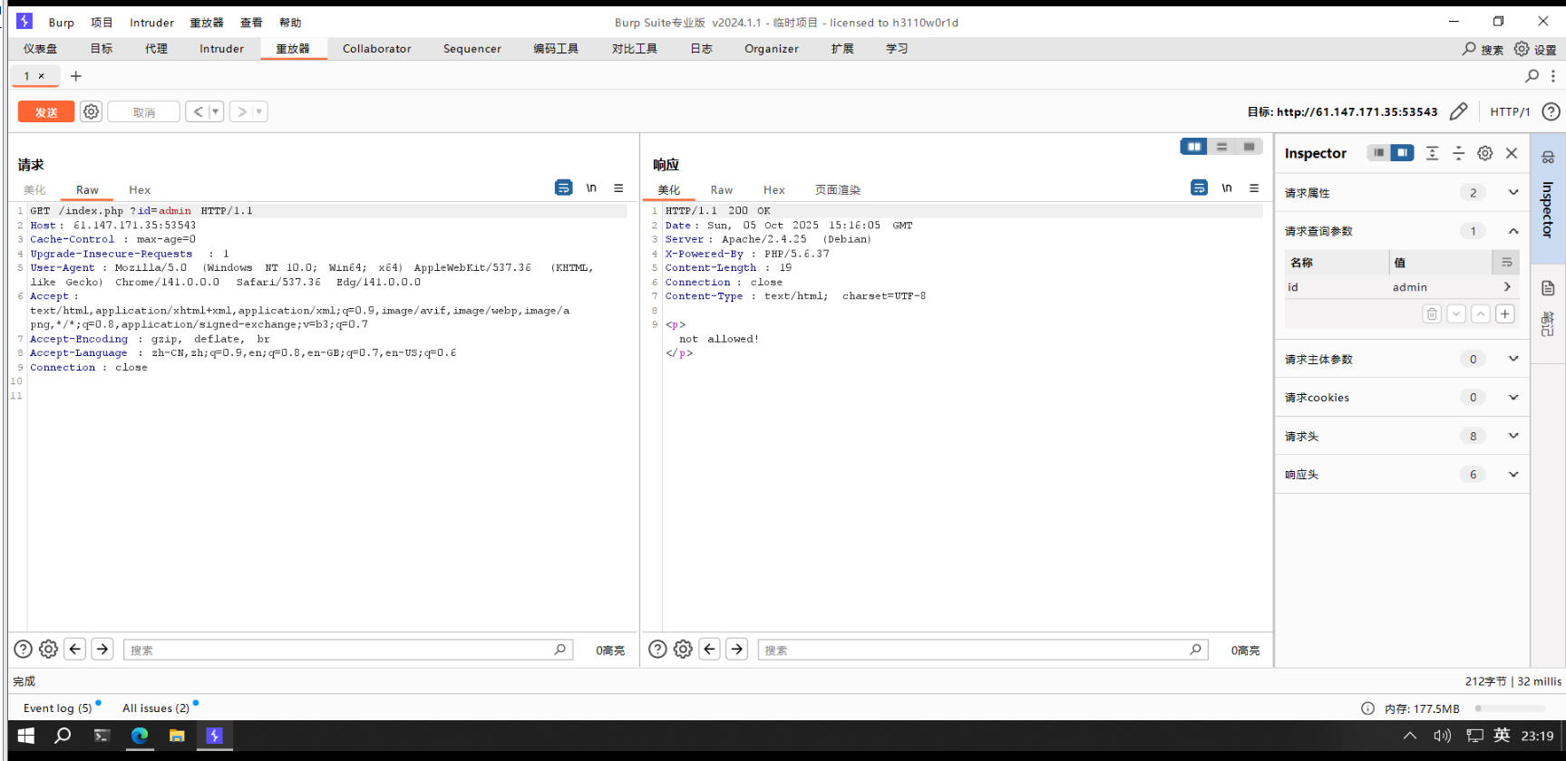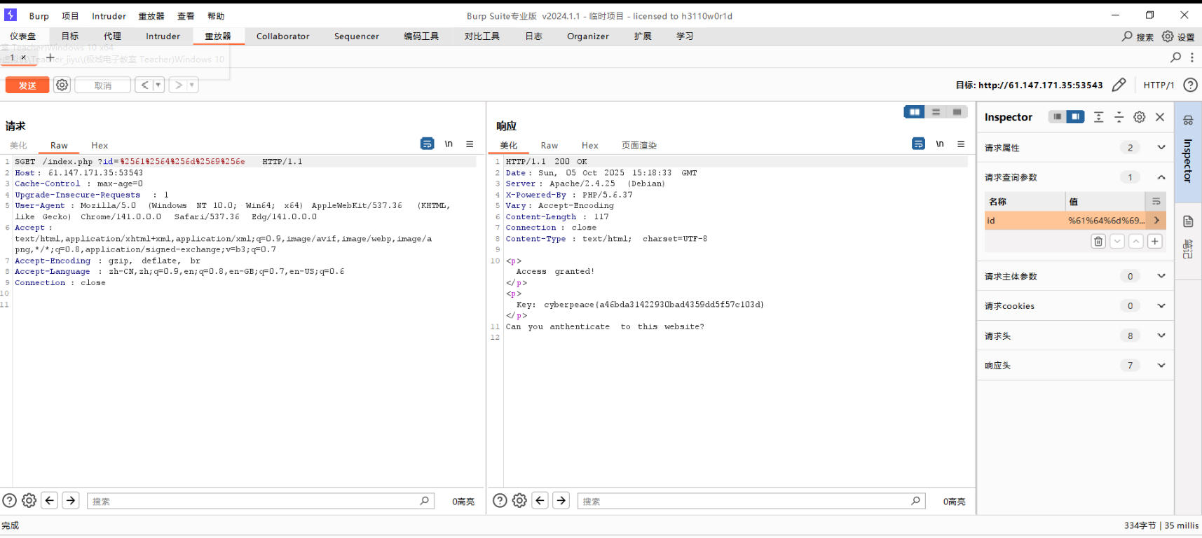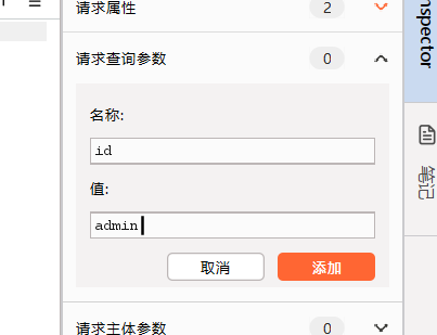通过右侧的请求查询参数,添加键值对id值为admin测试是否能通过。