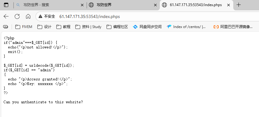 通过访问index.phps这个文件,可以看到index.php的源代码。