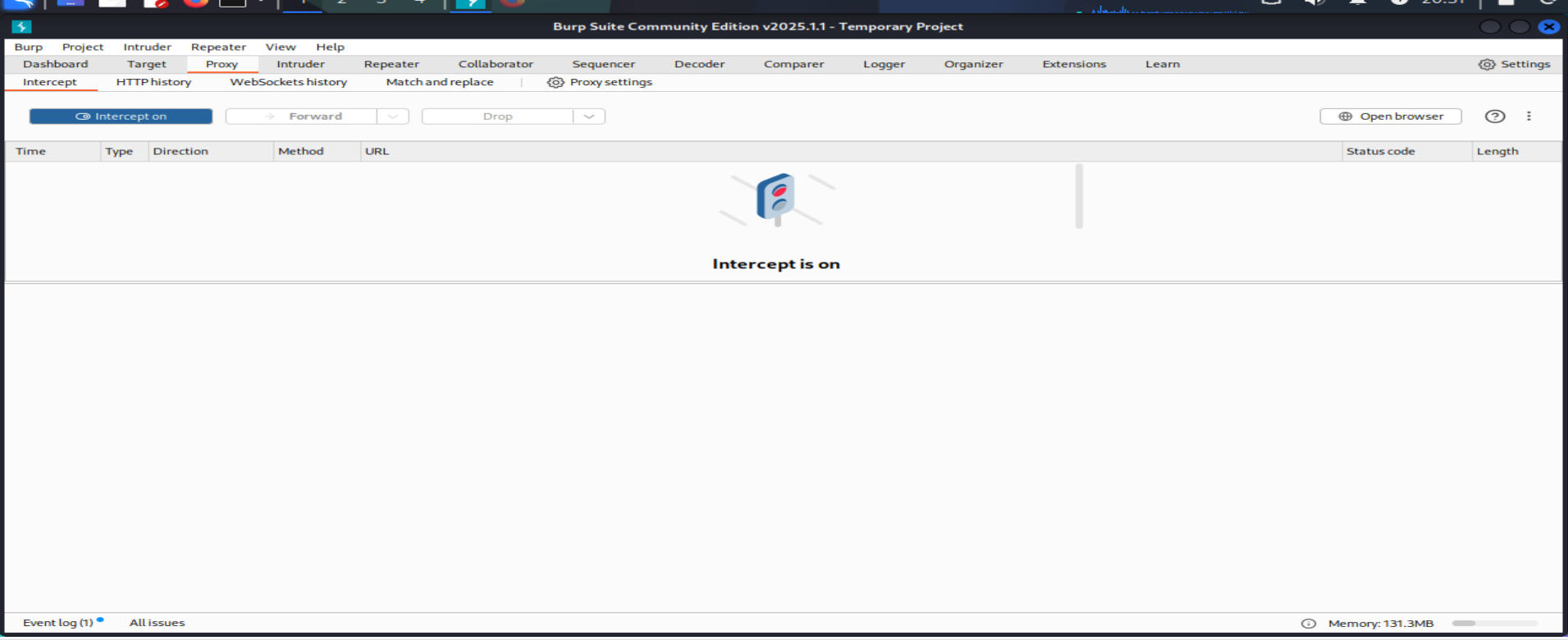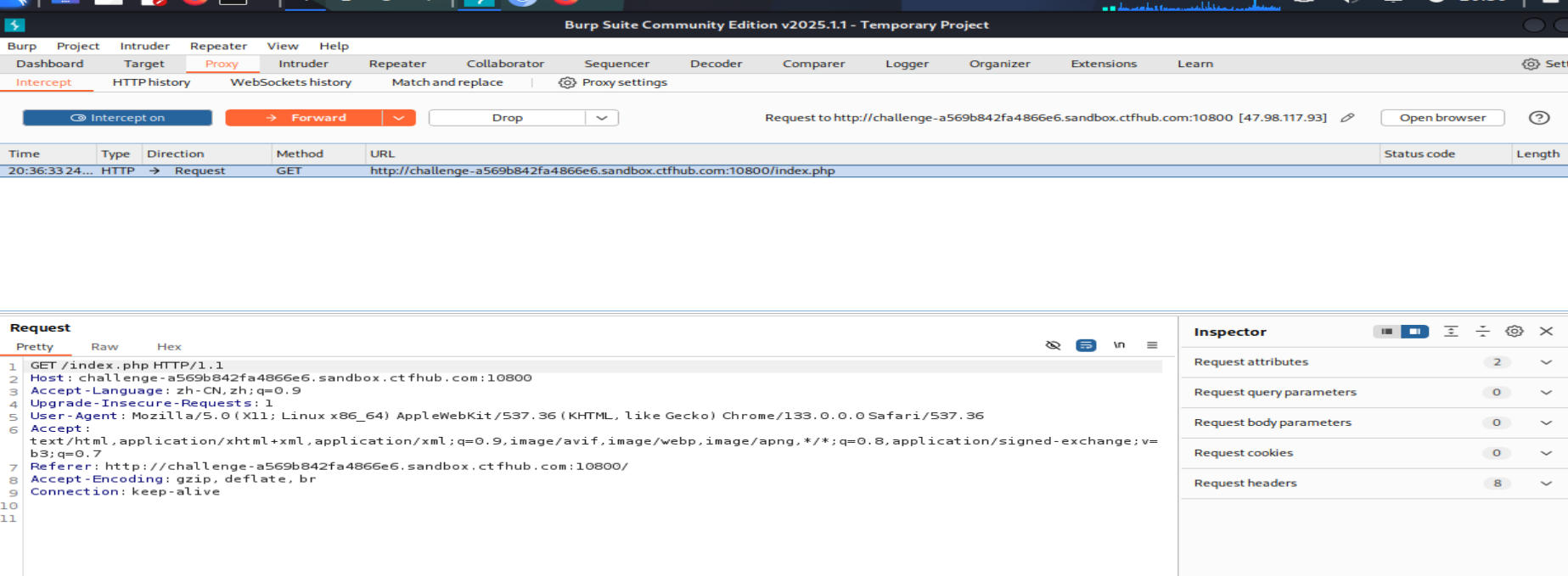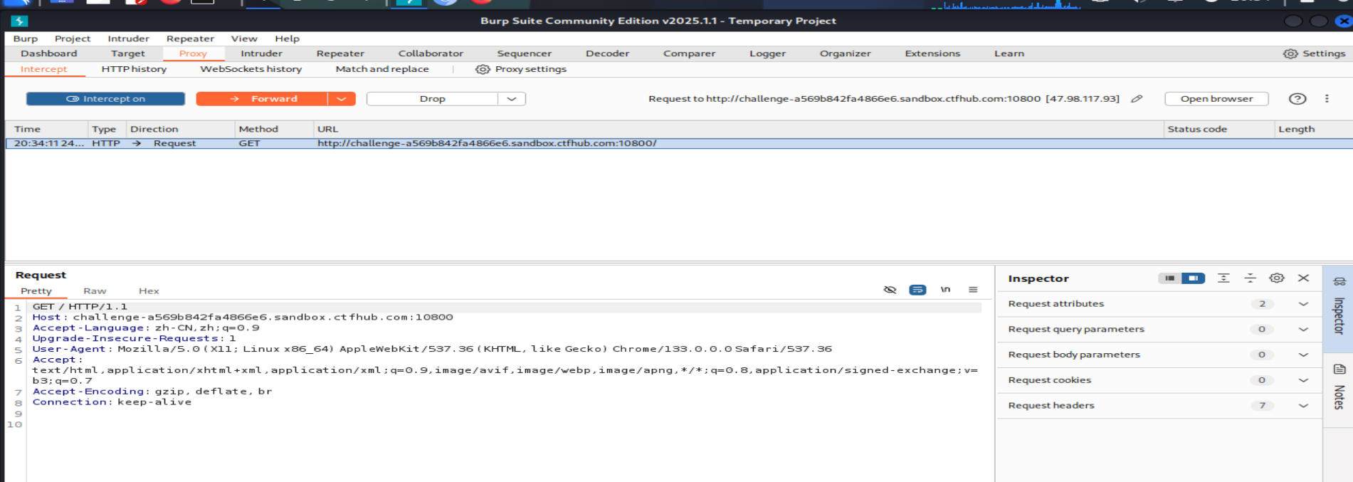 Step.1 使用Burpsuite的【Proxy】(代理)功能,使用【Intercept】(拦截器)功能进行请求拦截抓包。※