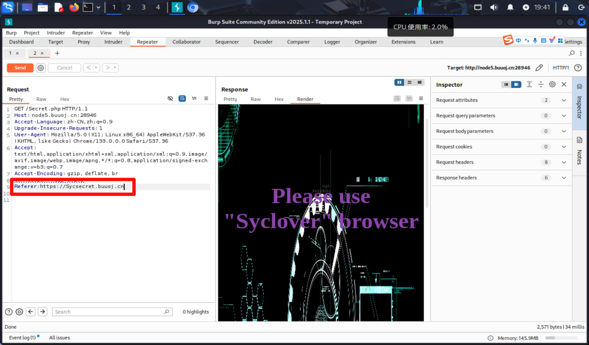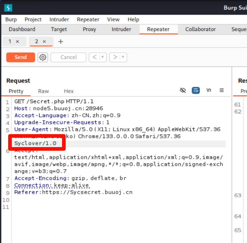 使用BurpSuite修改请求头,添加请求头Referer:https://Sycsecret.buuoj.cn